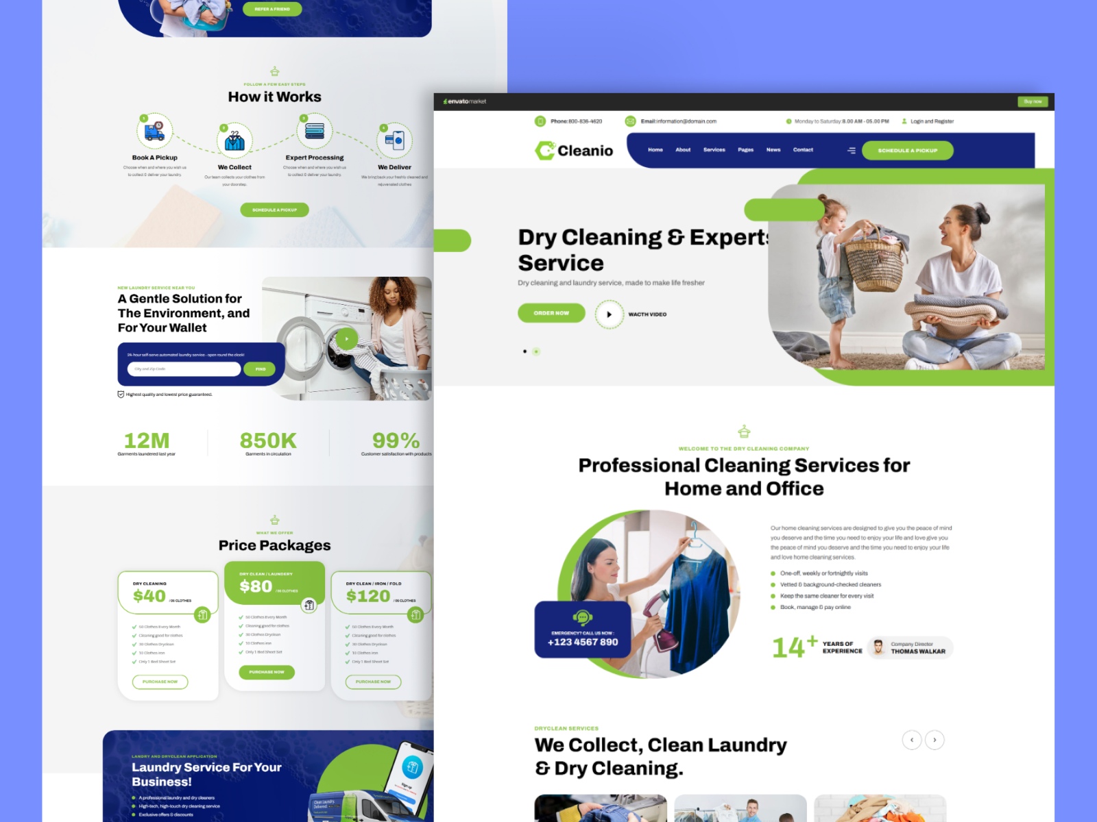 Cleanio is a modern and professionally designed HTML template built for laundry, dry cleaning, and a wide range of cleaning service businesses. It is a great fit for companies offering house cleaning, kitchen cleaning, carpet cleaning, window cleaning, dry wash, and related services that need a clean and trustworthy online presence.