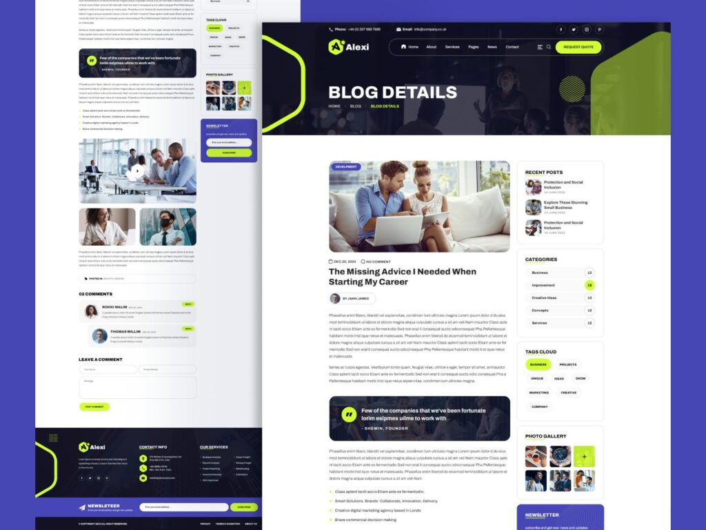 Product OverviewAlexi is a modern and versatile PSD template designed for business consulting firms, corporate service providers, agencies, startups, freelancers, and professional portfolios. With its clean structure and polished visual style, Alexi is ideal for creating a strong and trustworthy online presence for business-focused websites. The template includes 2 bold homepage layouts and 15+ carefully […]